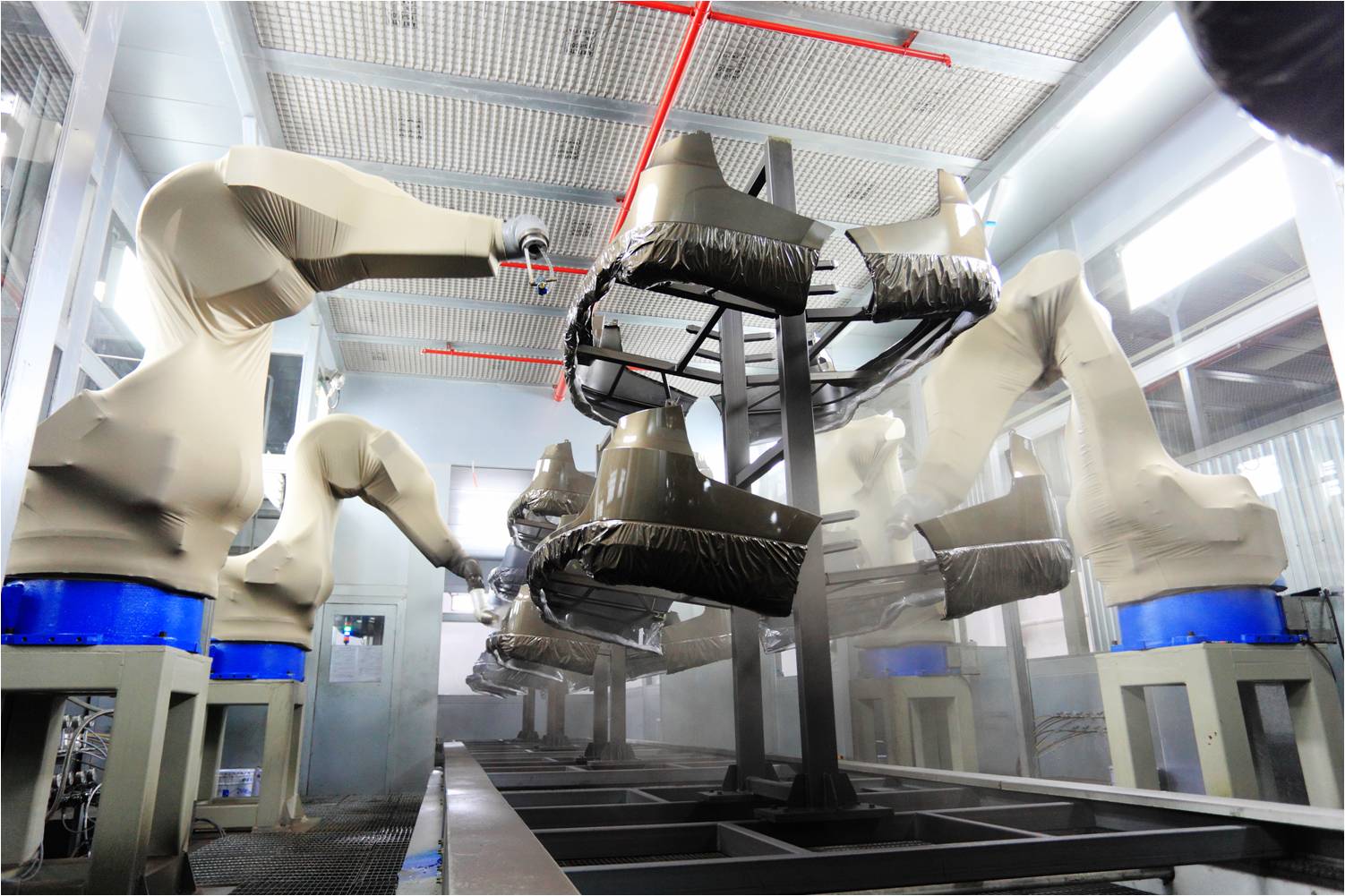 保險(xiǎn)杠自動(dòng)噴涂生產(chǎn)線:可并線噴涂包括乘用車(chē)前后保險(xiǎn)杠在內(nèi)的多種產(chǎn)品。